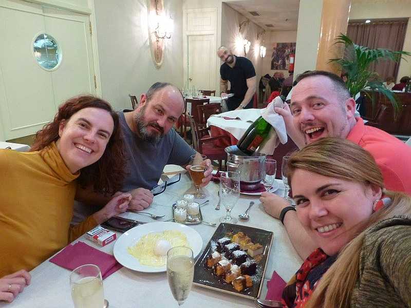 Nosotros con nuestros amigos australianos en La Lluna. ¡Ay ay ay que el camarero también quería aparecer en la foto!