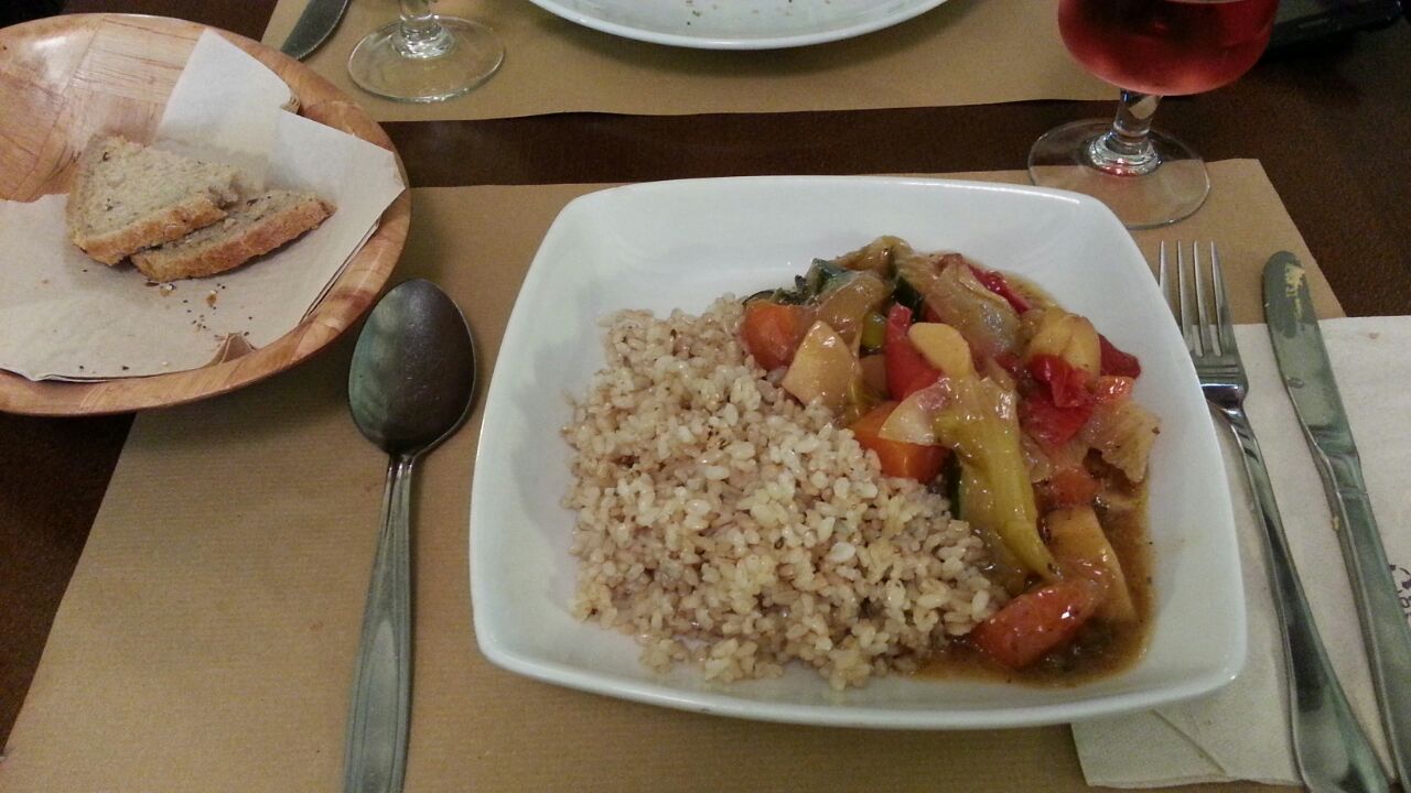 Arroz integral con verduras estofadas